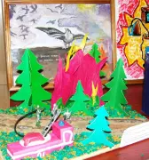 Поделки, аппликации, витражи и многое другое с использованием тканей, стекла, картона, глины, новогодних украшений красочно представлены городскими дошкольными учреждениями. Отмечены работы детей из детских садов №5 (Бахвалова Соня), №32 (Гарник Варя, Осокина Вероника, Булкина Кристина, Швецова Даша), №25 (Михайлов Женя), №40 (Куликов Саша), а также коллективная работа детского сада №17 – витраж «Может быть беда!», работа детей старшего дошкольного возраста детского сада №40 – макет «Лесные пожары».