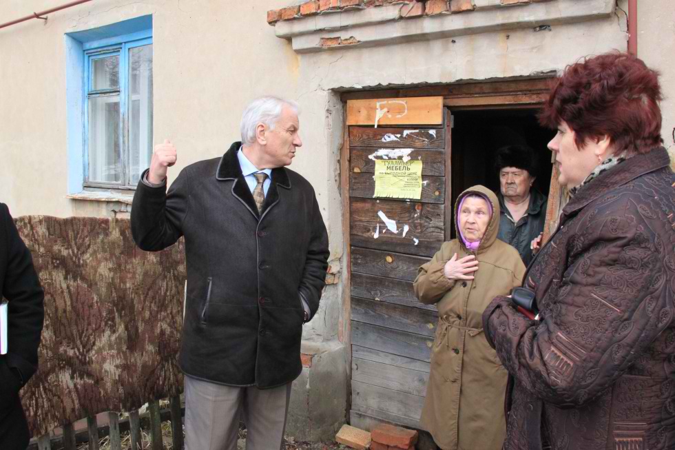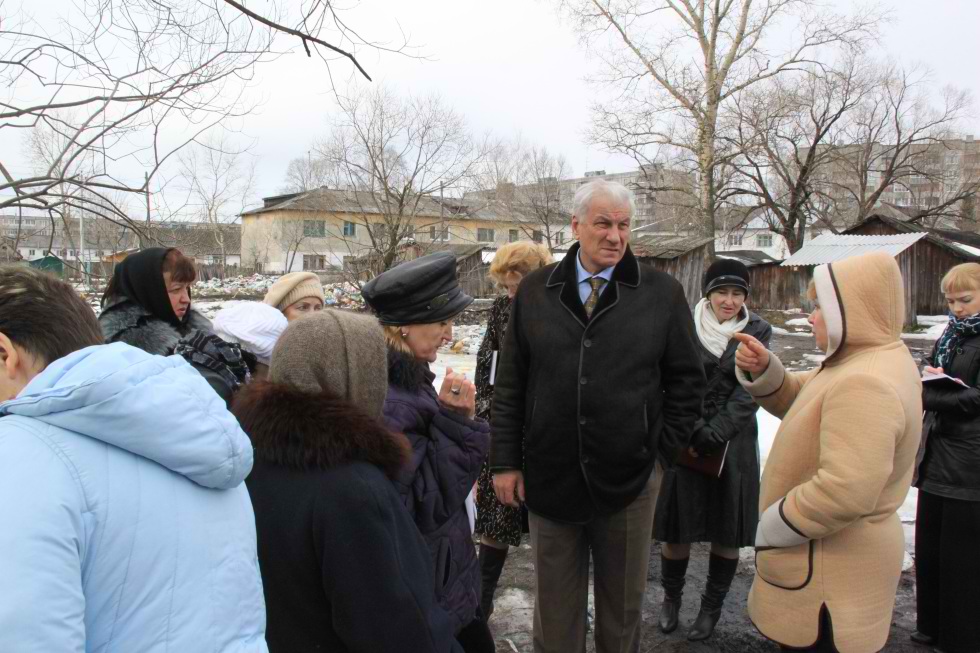 В непростой ситуации оказались жители дома №9 на той же улице. Двухэтажный кооператив в настоящее время находится в аварийном состоянии. Своевременный ремонт, достойная забота о собственном крове, ответственность жильцов могли бы предотвратить аварийную ситуацию. Однако строение на глазах жителей постепенно приходило в негодность, и до тех пор, пока одна из стен не разрушилась, жильцов мало волновала собственная судьба. Но признать дом аварийным, подлежащим сносу с обязательствами его расселения за счёт бюджетных средств невозможно, так как данный объект никогда не находился в муниципальной собственности. После беседы с жителями Юрий Гришкин пришёл к выводу, что поиск выхода из этой ситуации требует дополнительной проработки. Разваливающееся жилое здание – не единственная проблема. По необъяснимым причинам все жильцы дома дружно выбрасывают мусор в непосредственной близости от подъездов. Бескрайняя куча бытовых отходов возвышается во дворе. Продукты своей жизнедеятельности никто не пытается убрать, более того, с негодованием и нетерпением жители дома ожидают, когда это сделают городские власти. Глава города дал поручение вывоз мусора осуществить спецпредприятию (самостоятельно жители уже не смогут справиться с этой проблемой). Однако в дальнейшем поддержание чистоты придомовой территории и способы решения этой проблемы – обязанность собственников жилья.