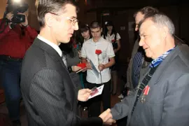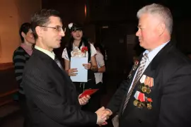 Перед ликвидаторами выступила заместитель главы города по социальной политике Татьяна Михеева. В своём обращении она отметила, что благодаря мужеству и смелости ликвидаторов, которым пришлось поплатиться здоровьем и даже жизнями, удалось избежать более масштабной катастрофы. Татьяна Викторовна выразила признательность участникам и вдовам ликвидаторов последствий Чернобыльской трагедии. За обращением к ликвидаторам аварии на ЧАЭС последовало вручение им юбилейных нагрудных знаков «25 лет ликвидации последствий Чернобыльской катастрофы» и альбомов «Сыны Отечества» (автор Сергей Иванов) с обращением к читателям главы города Юрия Гришкина.