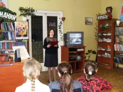 Празднику Великой Победы посвящалась литературно-музыкальная программа «Военной песни негасимый след», проведённая в ГБИЦ для учащихся 5-х классов школы №7. Наша программа повествовала о песнях военного лихолетья, рождённых любовью, надеждой, горечью утрат и огромной гордостью победы над жестоким врагом. От первых залпов и выстрелов до победоносного майского салюта, через всю войну прошагали они в боевом солдатском строю. Сколько этих песен, прекрасных и незабываемых, пламенных и лирических! И у каждой своя история. В глубокую задумчивость и размышления погружали школьников проникновенные песенные строки. Но не менее впечатляющими были и истории создания самих музыкальных свидетельств войны, услышанные ребятами, возможно, впервые. Замечательно дополняли музыкальную композицию кадры кинохроники, снятые на полях сражений военными операторами. Они поражали своей достоверностью – страшной правдой войны.