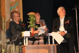 К зрителям обратились: председатель городского совета Николай Балахин; депутат, член Союза писателей РФ, основатель праздника Фатьяновской песни в нашем городе Евгений Шапорев; вдова писателя Сергея Никитина, друга Алексея Фатьянова, Клара Никитина; лауреат премии имени Фатьянова «Соловьи, соловьи…», член СП РФ Лариса Чечекина, близко знавшая семью Фатьяновых; председатель правления областной писательской организации Светлана Баранова; директор вязниковского музея «Песня XX века» Людмила Антонова, передавшая устроителям праздника приветственное письмо, подписанное главой Вязниковского района.