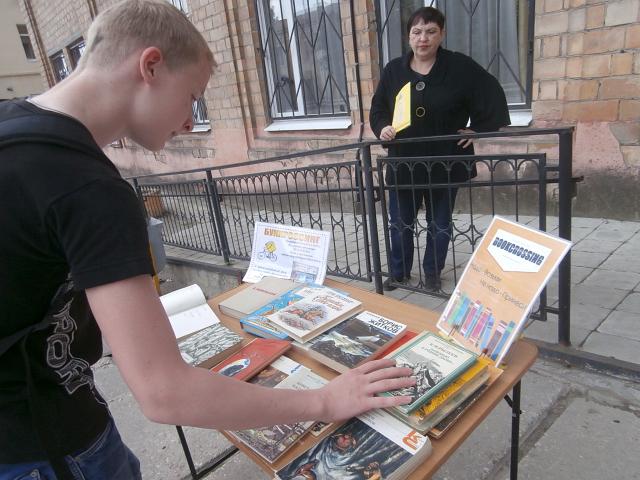 ГБИЦ активно использует новые возможности для популяризации книги и чтения. К буккроссингу была подобрана литература, разнообразная по жанрам и читательскому назначению. Возле здания библиотеки был организован на летнее время буккроссинг – библиотека под открытым небом для желающих обрести интересного собеседника в лице понравившейся книги, чтобы потом поделиться радостью увлекательных впечатлений и любопытных открытий в прекрасном книжном мире с другими книголюбами. Путешествие книги от одного читателя к другому началось.