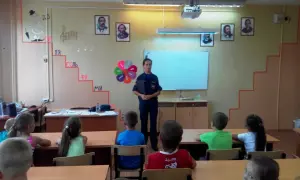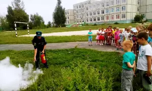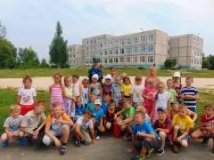 В пришкольных лагерях отдыха продолжаются встречи с сотрудниками МЧС. Одно из мероприятий огнеборцы провели на базе школы №3 г. Гусь-Хрустальный.