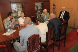 Глава Гусь-Хрустального Юрий Гришкин накануне юбилея города, 17 июня, провел встречу с почетными гражданами. Общение с именитыми горожанами получилось обоюдополезным. В начале встречи глава города поздравил гостей с наступающим праздником, ознакомил с программой празднования юбилея. Юрий Владимирович рассказал гостям о социально-экономической ситуации в городе, обозначил приоритетные направления деятельности, ответил на многочисленные вопросы.