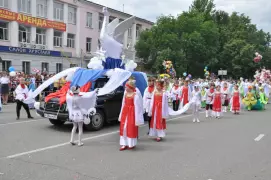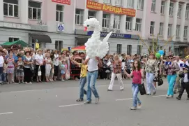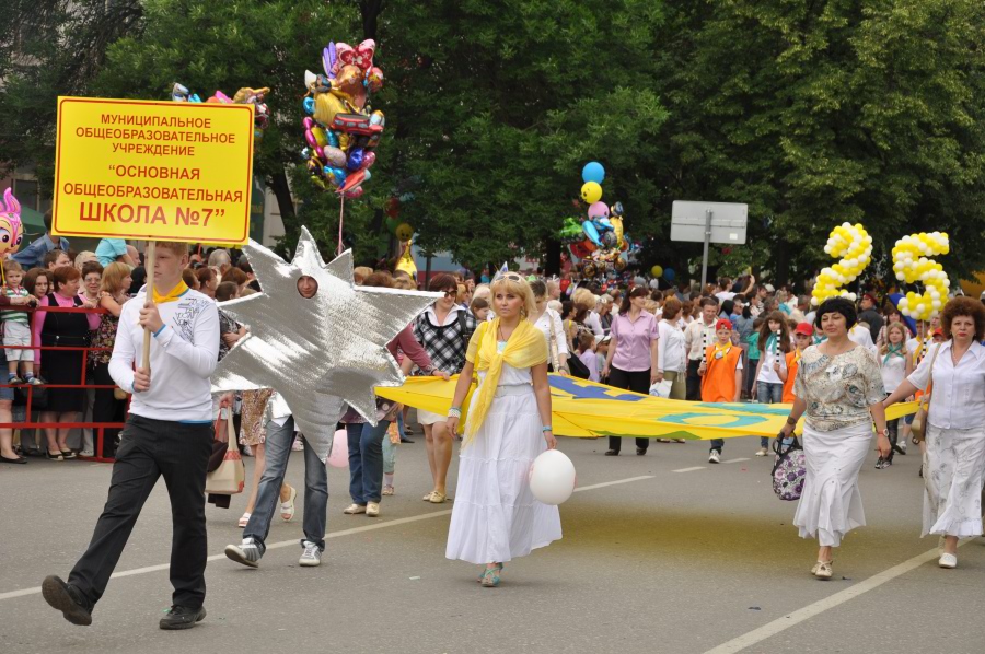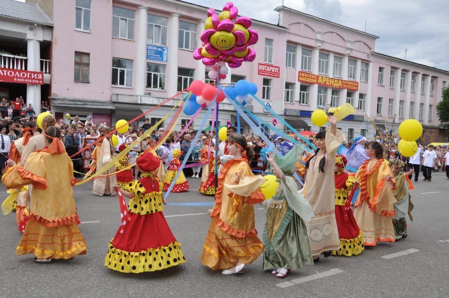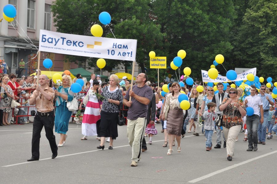 В 12.30 от нового музея в сторону площади Свободы стартовала театрализованная колонна. В ней приняло участие более 1500 человек, делегации учебных заведений и семи предприятий. Об официальном открытии праздника, по традиции, объявил глава города. В своем кратком выступлении Юрий Владимирович, в частности, сказал: «День рождение города – это день рождения всех людей, что жили и живут в нем! И сегодня именно для вас организован этот яркий праздник. От всей души желаю всем стабильности и процветания, уверенности в своих силах и завтрашнем дне! Заботой о любимом городе сделаем нашу жизнь лучше, благоустроенней, комфортней. Здоровья, успехов в труде, мира и благополучия нашему общему дому!»