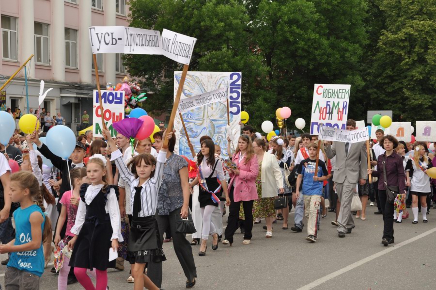 Торжества в связи с 255-летием Гусь-Хрустального состоялись 18 июня 2011 года. К юбилейной дате город готовился целый год. Городские власти, комитеты по культуре и туризму, по физической культуре, спорту и молодежной политике приложили все усилия для яркого и запоминающегося празднования дня рождения Гусь-Хрустального, которое началось со встречи гостей из различных городов области, директоров и предпринимателей с главой города Юрием Гришкиным. После официального приема в здании администрации участники встречи посетили Музей Хрусталя имени Мальцовых. Здесь гостям была представлена историческая экспозиция, посвященная истории нашего города. Затем состоялось награждение отличившихся горожан, вручение молодым гусевчанам стипендий имени Акима Мальцова и дипломов с отличием выпускникам учебных учреждений города.