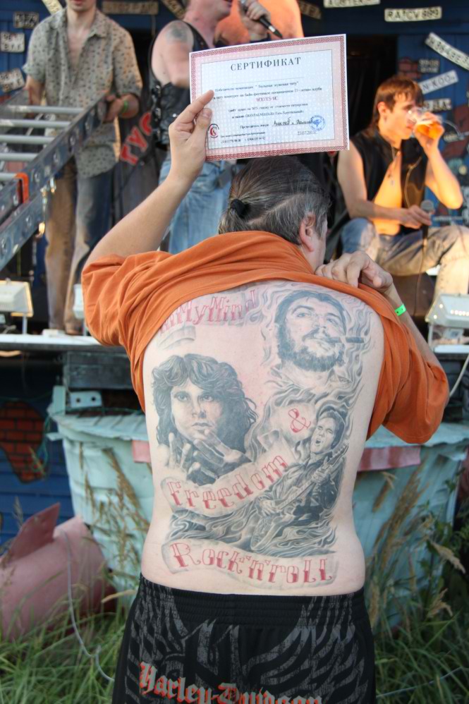 Состоявшийся конкурс на самую большую татуировку у мужчин и женщин нашел своих победителей, им были вручены памятные и ценные подарки. Глубокое впечатление на зрителей оказал «Московский театр боли и ужасов» Фрик-шоу, показав людям, к каким испытаниям можно подвергать человеческое тело. За ними огненная команда «Жарптица» показала своё зажигательное Фаер-шоу, оставив не меньшее впечатление у людей.