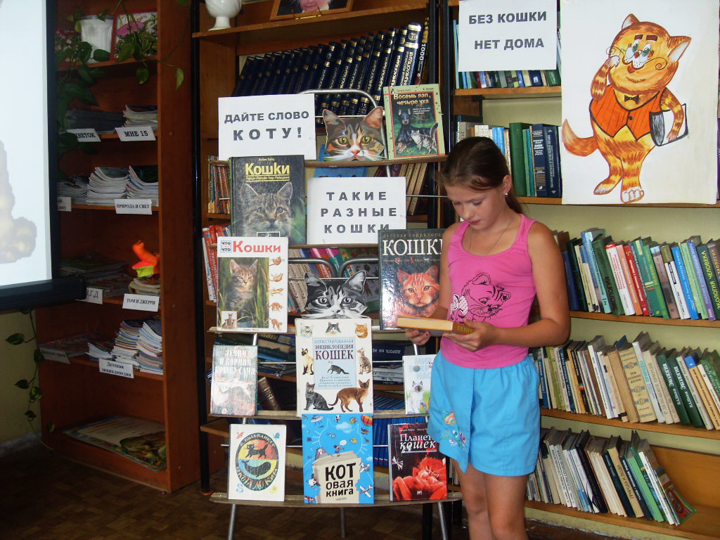 11 августа в ГБИЦ для ребят из социально-реабилитационного центра была проведена познавательно-игровая программа «Как разбудить добро». Это мероприятие посвящалось одному из самых давних и загадочных существ, поселившимся у нашего домашнего очага - кошкам. Ведущие программы предложили школьникам игру-путешествие в страну Мурландию, целью которого было изучение особенностей поведения, характера, среды обитания, на первый взгляд хорошо всем знакомой и одновременно такой независимой кошки. Путешествие началось с истории, как дикое животное одомашнилось и человек, по достоинству оценив её прекрасные качества, подружился с кошкой. Ребята услышали много интересных фактов из жизни кошек разных стран. Кошачьи повадки и нрав ребята познавали, отвечая на вопросы викторины «Это всё о кошках». В ходе программы вспомнили и о литературных произведениях, в которых описаны кошки и их главные противники - собаки. Этому посвящалась игра «Мяу-Гав!», в которой ребятам предстояло определить, какое животное – главный литературный герой и издать характерный для этого животного звук. Всегда оживлённо встречают ребята весёлые игры. Ведущими были предложены забавные игры: «Замотай клубок», «Кусочек сыра», «Зову мышей на бой». На протяжении всей программы демонстрировались яркие оригинальные слайды из жизни наших пушистых любимцев, которые замечательно иллюстрировали программу. Для мероприятия была оформлена книжная выставка «Дайте слово коту!».Представленные на ней художественные и познавательные книги – незаменимые помощники для тех, кто желает больше узнать о кошках. Ведущие программы провели краткий обзор этих книг для ребят. Завершая программу, ведущие призывали школьников быть ответственными за своих домашних питомцев, бережно обращаться с «братьями нашими меньшими».