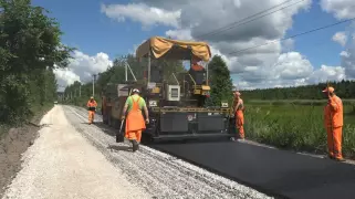 Бригада дорожных строителей укладывает основной слой асфальтобетона от ул. Набережной, дом №120 до поселка Лесной. Ремонт этого участка начался с фрезерования старого асфальта. После завершения подготовительных работ дорожные строители приступили к укладке двух слоёв асфальтобетона – выравнивающего и основного.