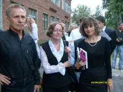 В презентации принимала участие вдова писателя – Клара Михайловна, она проводит большую работу по пропаганде творчества рано ушедшего супруга. Наша группа в составе А.Алфёрова, Н.Хомутова, Е.Шапорева пожелала Кларе Михайловне новых творческих успехов и вручили ей цветы от имени всех гусевчан.