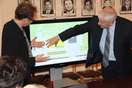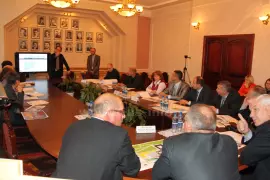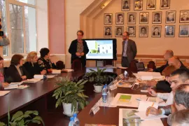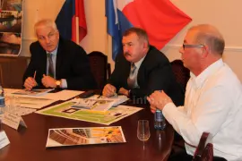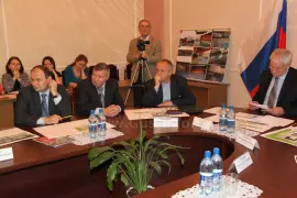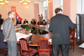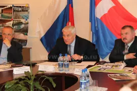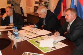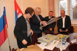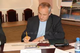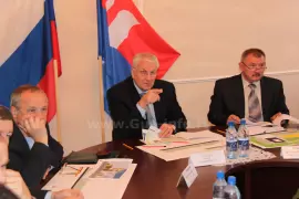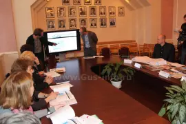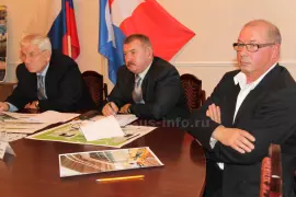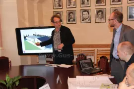 2 ноября в здании городской администрации состоялась встреча главы города Юрия Гришкина с представителями строительной компании ООО «Сканстрой» и архитектурного бюро «MAF Arkitektskontor» (Швеция) по вопросу строительства в городе физкультурно-оздоровительного комплекса. В разговоре приняли участие Леонид Борисенко, директор департамента по физической культуре, спорту и туризму администрации Владимирской области, Геннадий Мальцев, председатель совета директоров ООО «Сканстрой», Михаил Валенков, начальник управления архитектуры и строительства администрации города Гусь-Хрустального, Надежда Голубева, председатель городского комитета по физической культуре, спорту и молодежной политике, Матс Якобссон, директор проектного бюро МАФ, а также Андерс Ренберг, архитектор МАФ, представивший собравшимся проект будущего спортивного комплекса.