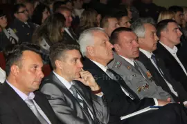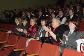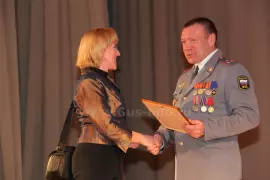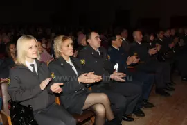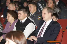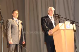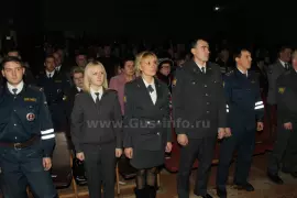 В этот же день гусевских полицейских поздравляли во Дворце молодежи «Хрустальный», где был дан замечательный концерт лучшими творческими силами города, и наряду с признанными мастерами сцены коллег порадовали своим искусством самодеятельные артисты отдела Олег Балашов и Юлия Никульшина. Виновников торжества приветствовали начальник межмуниципального отдела, полковник полиции Алексей Киселев, глава города Юрий Гришкин, председатель горсовета Николай Балахин, глава района Алексей Кабенкин, представитель стекольной фирмы «РАСКО» Леонид Яковлев.