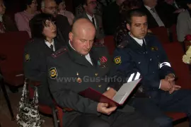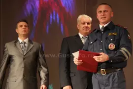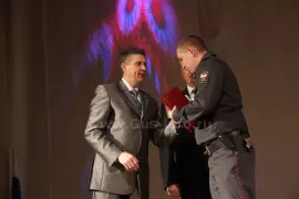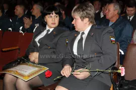 По традиции, в праздничный день чествовали ветеранов, а награды органов внутренних дел, городского и районного муниципалитетов вручены 63 сотрудникам полиции. За многолетнюю службу в органах внутренних дел, активную общественную работу знака «Почетный ветеран» удостоен подполковник милиции в отставке Николай Митин. Нагрудный знак МВД «За верность долгу» вручен инспектору по связям со СМИ, старшему лейтенанту внутренней службы Юлии Никульшиной и психологу ОРЛС, старшему лейтенанту внутренней службы Ларисе Липатовой. Почетной грамотой областного УМВД награждены старший следователь следственного отдела Елена Сорокина, заместитель начальника отдела оперативно-розыскной части уголовного розыска Михаил Жбанов, специалист ОРЛС Михаил Звездкин и старший оперуполномоченный оперативно-розыскной части экономической безопасности Игорь Шутников. Нагрудный знак и звание «Лучший следователь» получила Любовь Буркавцова - начальник отделения по раскрытию преступлений против личности, ей же вручена медаль «За отличие в службе» 3 степени за 10 лет безупречной службы. За образцовое выполнение служебного долга нагрудным знаком областного УМВД награждена Вероника Худякова - начальник дознания. Нагрудного знака «Отличник милиции» удостоены полицейские патрульно-постовой службы Андрей Самсонов и Елена Пронина, кинолог ППС Галина Кузнецова. Целому ряду сотрудников полиции вручены благодарности УМВД России по Владимирской области, медали «За отличие в службе» I (20 лет безупречной службы), II (15 лет) и III (10 лет) степени. За активное сотрудничество и помощь в области освещения служебной деятельности межмуниципального отдела в СМИ Почетной грамотой отдела отмечена группа гусевских журналистов.