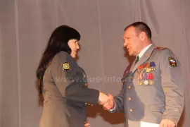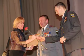 Кроме того, стражей правопорядка поздравили генеральный директор Гусевского арматурного завода «Гусар» Александр Березкин, председатель Общественного совета Лев Яхаев и председатель Совета ветеранов Людмила Волкова. На торжественном собрании было высказано много теплых слов в адрес сотрудниц органов внутренних дел, которые наравне с мужчинами охраняют спокойствие людей, защищают законные права наших горожан. Принять эти поздравления посчастливилось единственной женщине, присутствовавшей на приеме, начальнику отделения дознания ММ ОМВД РФ «Гусь-Хрустальный» Веронике Худяковой.