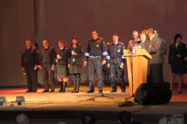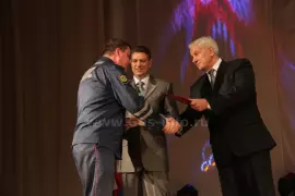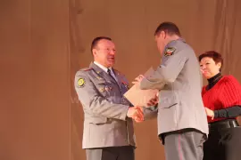 Минутой молчания участники торжества почтили память своих соратников, погибших при исполнении служебного долга, а их семьям были вручены подарки.