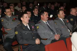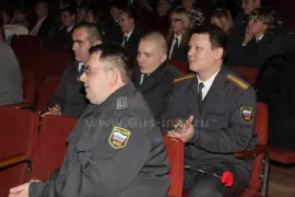 Глава города Юрий Гришкин, в частности, отметил, что благодаря работникам межмуниципального отдела МВД за последний год удалось оздоровить обстановку в Гусь-Хрустальном. Собравшиеся в зале узнали об утверждении городской программы до 2014 года, согласно которой предстоит оснастить гусевскую полицию современным оборудованием для борьбы с правонарушителями. Юрий Владимирович передал начальнику отдела, полковнику полиции Алексею Киселеву направления на получение квартир в новом доме для семей троих гусевских полицейских, полученных по ходатайству руководства отдела.