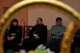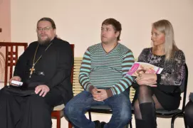 - протоиерей Иоакиманской церкви отец Андрей, который рассказал о семейных ценностях, о трудностях, с которыми молодожёны могут столкнуться в семейной жизни и как правильно выходить из сложившихся ситуаций, поведал о таинстве венчания и благословил всех присутствующих на спокойную и счастливую жизнь.