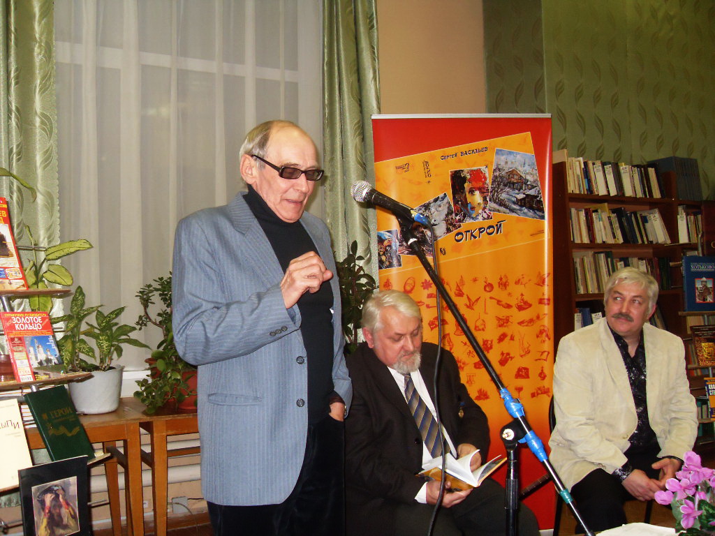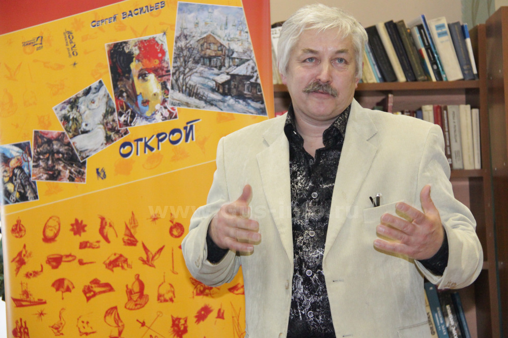 Очередной праздник поэзии состоялся в «Городском библиотечном информационном центре». Сергей Юрьевич Васильев – уроженец г. Гусь-Хрустальный, живет и работает в Сергиеве Посаде, журналист, режиссер, оператор, сценарист, литератор, издатель. Закончил МАИ. Автор 30 документальных фильмов, 3-х музыкальных фильмов, создатель телеверсий 4 спектаклей Тверского драмтеатра, участник испытаний станции «Мир», орбитального корабля «Буран», ракетоносителя «Энергия» и впервые предстал перед публикой как автор сборника стихов. 25 ноября прошла презентация первого поэтического сборника Сергея Васильева «Открой».