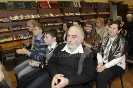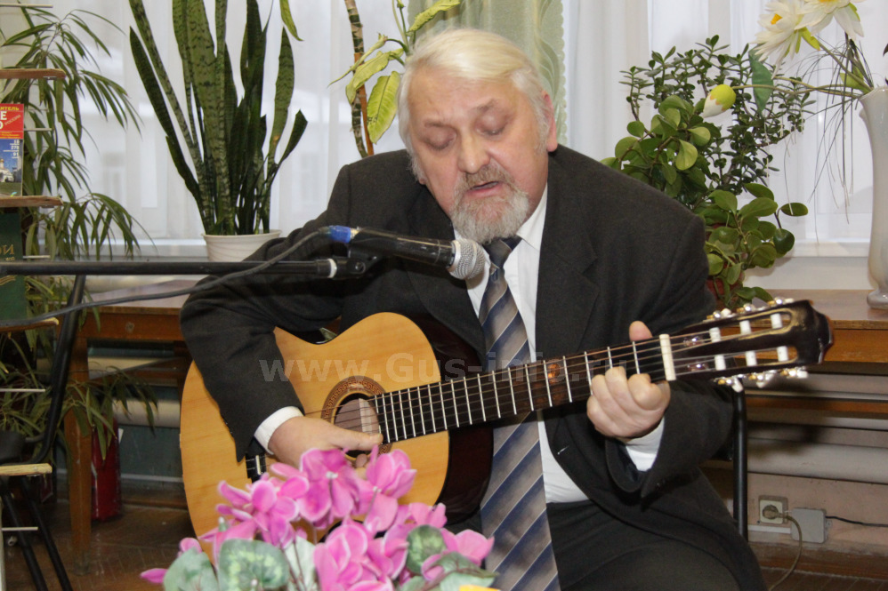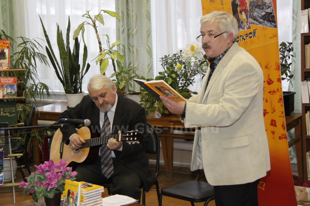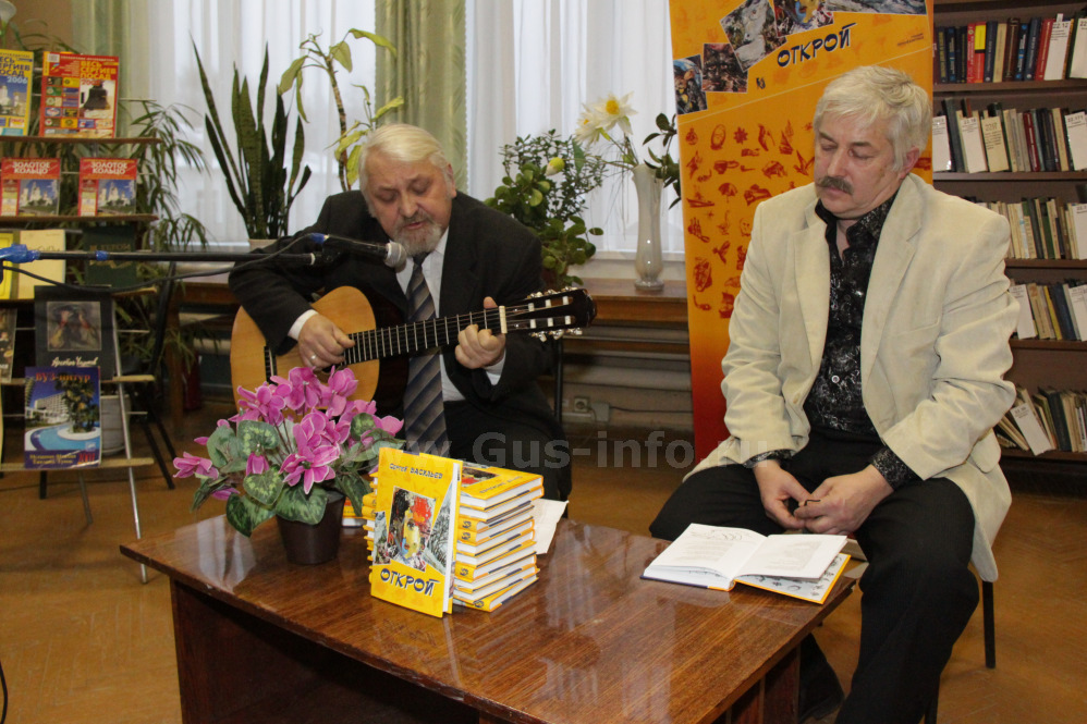 Теплая встреча проходила под аккомпанемент гитары. За инструментом – друг и единомышленник - Скулов Николай Игоревич. Стихи Сергея Васильева гармонично легли на музыку. Вечер получился необыкновенно теплый и светлый. Открытие нового поэта для гусевской публики состоялось.
