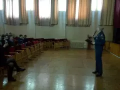 Сотрудники ГИБДД и ОПДН, совместно с сотрудниками МЧС и ВДПО, провели беседу со студентами о правилах безопасного поведе