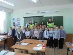 Сотрудники ГИБДД рассказали ребятам о культуре безопасного поведения на улицах и дорогах, а также в общественных местах, напомнили правила дорожного движения пешеходов и пассажиров транспортных средств. Разъяснили правила поведения при движении по маршруту «Дом-Школа-Дом», о наиболее часто встречающихся опасных дорожных ситуациях при передвижении по нему и важности перехода дороги только в специально обозначенных знаками «Пешеходный переход» и «зеброй» местах. Ребятами изучены сигналы пешеходного и транспортного светофора, основные знаки дорожного движения, для чего необходимы светоотражающие элементы на ранцах и одежде в тёмное время суток. Также учащимся было рассказано о том, что может случиться, если ребята будут находиться в автомобиле не пристегнутыми.
