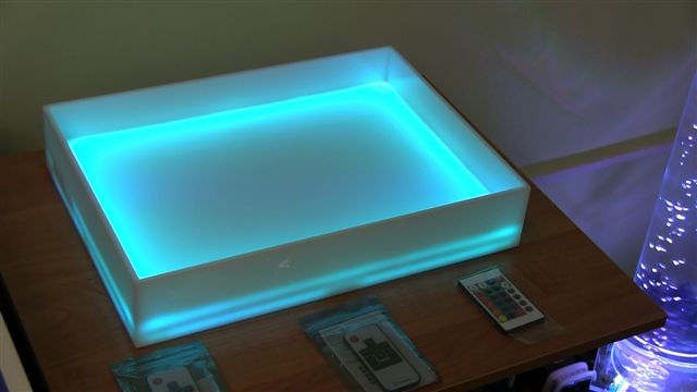 Есть в сенсорной комнате и акватерапия, где можно работать с красками, массажное кресло и мягкие модули (пуфы), удобные для проведения тренинговых занятий, а также воздушно-пузырьковая колонна - основной и неотъемлемый элемент любой такой комнаты. Она создает сильную зрительную, тактильную и слуховую стимуляцию. Безопасное угловое зеркало, помещенное за пузырьковой колонной, многократно увеличивает пространство, а мягкая платформа для колонны позволяет близко ощутить ее терапевтические возможности.