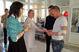 20 апреля во Владимирской области отметили Национальный день донора. В праздничной акции приняли участие волонтёры Владимирского строительного колледжа, которые в Областной станции переливания крови проводили викторину среди доноров и вручали всем её участникам сладкие подарки.