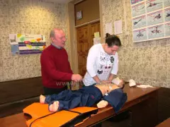 Чтобы правила прочно закрепились в подсознании наших студентов, С.Н.Воронин предоставил возможность каждому из присутствовавших «побывать» на его месте. Для этого на занятие он привёз тренировочный манекен, который спасатели прозвали Гошей. К слову сказать, Гошу почти ежедневно «возвращают к жизни» во время занятий с детьми и студентами в образовательных учреждениях и в ходе тренировок самих спасателей. И за одно такое учебно-тренировочное занятие «жизненные силы» он теряет не один раз. На тренажёре можно провести сердечно-легочную реанимацию и оказать первую медицинскую помощь. После теории студенты перешли к практике. Руководствуясь наставлениями начальника спасательной станции, ребята отрабатывали приёмы оказания первой помощи на безропотном Гоше.