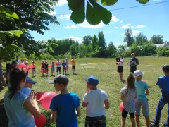 Погода располагала к активным играм и расположившись на зелёном поле начали эстафету.
