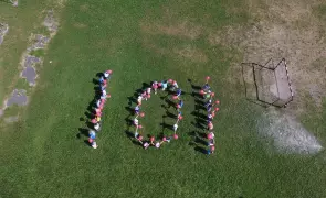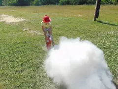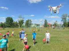 Как красивый финал, неизменно производящий огромное впечатление на детей, сотрудники МЧС запустили в воздух квадрокоптер и с помощью него произвели фото и видео детей, выстроившихся на поле в цифру «101».