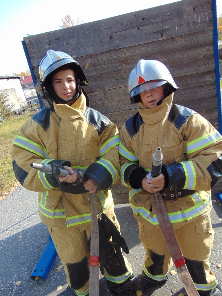 Далее ученики Курловской школы потренировались в надевании боевой одежды огнеборца, научились прокладывать рукавную линию.