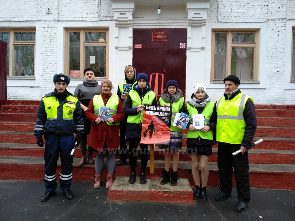 01 ноября 2018 года в рамках проведения оперативно-профилактической операции «Пешеход» сотрудники ОГИБДД МО МВД России «Гусь-Хрустальный» совместно с представителями народной дружины «Дорожный надзор» и учащимися МБОУ «Основной средней общеобразовательной школой №7» города Гусь-Хрустальный провели акцию, направленную на повышение безопасности дорожного движения.