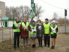 Школьники так же не забыли и про пешеходов, которым объясняли, как правильно и безопасно переходить проезжую часть дороги, вручили информационные буклеты и подарили световозвращающие элементы, напомнив о том, что их необходимо использовать на верхней одежде в темное время суток или в условиях недостаточной видимости.