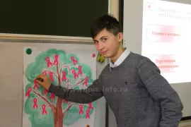 30-го ноября в МБОУ "СОШ № 10" организована информационная акция «Должен знать», направленная на профилактику ВИЧ-инфекции. Учитель биологии Н.В.Баранова на мероприятии довела до сведения учащихся 9-х классов названия сайтов, на которых можно найти данную информацию, посмотреть видеоуроки, пройти тестирование. Наталья Владимировна провела викторину "СТОПВИЧСПИД", представила жюри в составе: заместителя директора по ВР Н.В.Власову, педагога-организатора А.В.Староверову, инспектора ОПДН Д.П.Бондареву. Пять команд ответили на 15 вопросов, касающихся как здоровьесбережения, так и правовых знаний. Победителями оказались две команды 9А и 9Б (№1) классов. Участники акции прикрепили красные ленты на дерево в знак признания глобальной проблемы и солидарности с теми, кого эпидемия СПИДа коснулась лично: с ВИЧ-инфицированными, больными СПИДом.