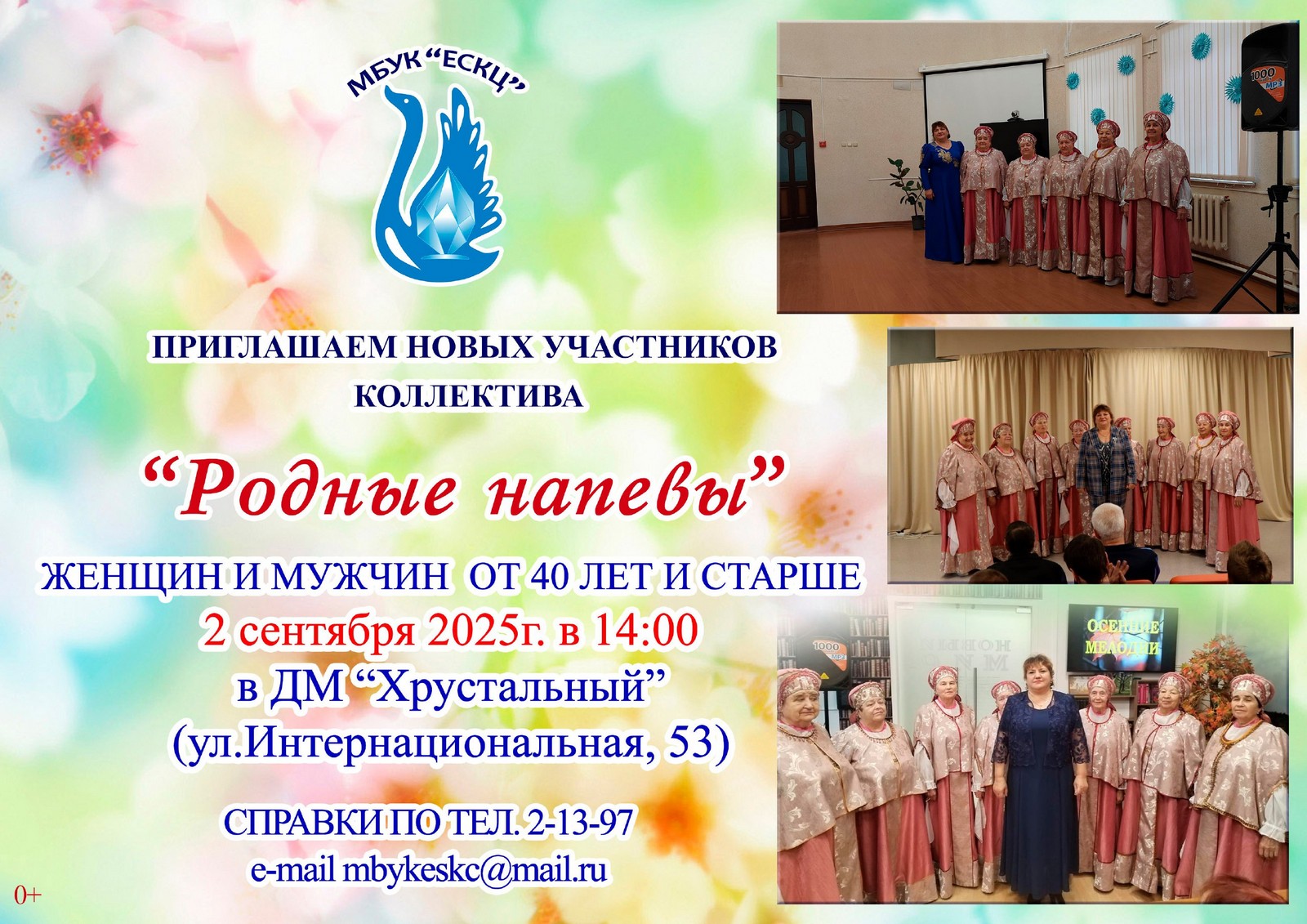 ✅ Вокальный коллектив «Родные напевы» (рук. Е. В. Бибяева) - 2 сентября в 14-00