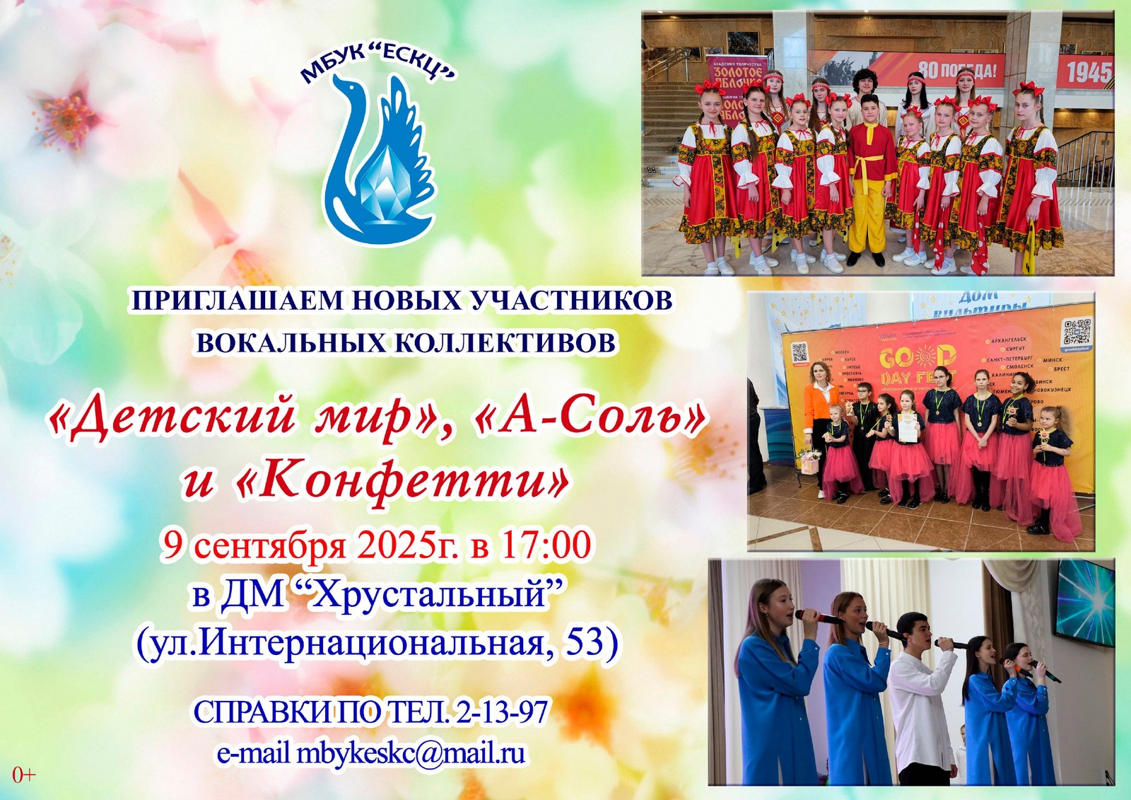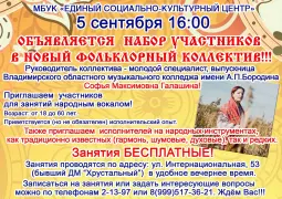 Спешим сообщить, что в настоящее время планируется набор в творческие коллективы МБУК «Единый социально-культурный центр».