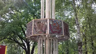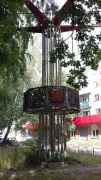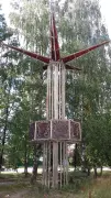 стелы 01.02.2024 | Комментарии: | 217 Сооружение представляет собой мощную, стальную, вертикальную конструкцию высотой около восьми метров. Посередине стела украшена кольцом разноцветных витражей. Навершие выполнено в виде большой, остроконечной звезды с лучами из рубинового стекла.