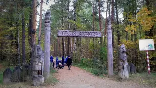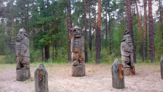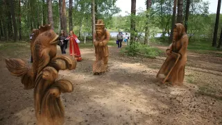 Главная особенность парка - деревянные скульптуры. Здесь можно встретить лешего, гнома, птиц, трёх богатырей, щуку и других сказочных персонажей.