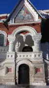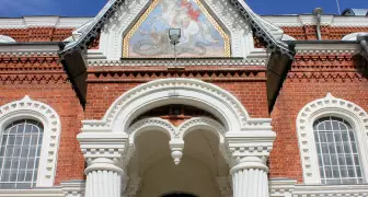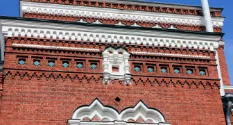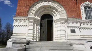 Фасад собора украшен изразцами и содержит множество изящных декоративных элементов. Особую торжественность собору придает сочетание красного кирпича и белокаменной отделки. Здание имеет пять входов, украшенных порталами из белого резного камня.